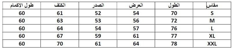 الرجاء الرجعوع إلى جدول القياسات قبل تاكيد الطلب