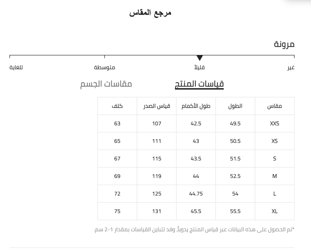 الرجاء الرجعوع إلى جدول القياسات قبل تاكيد الطلب