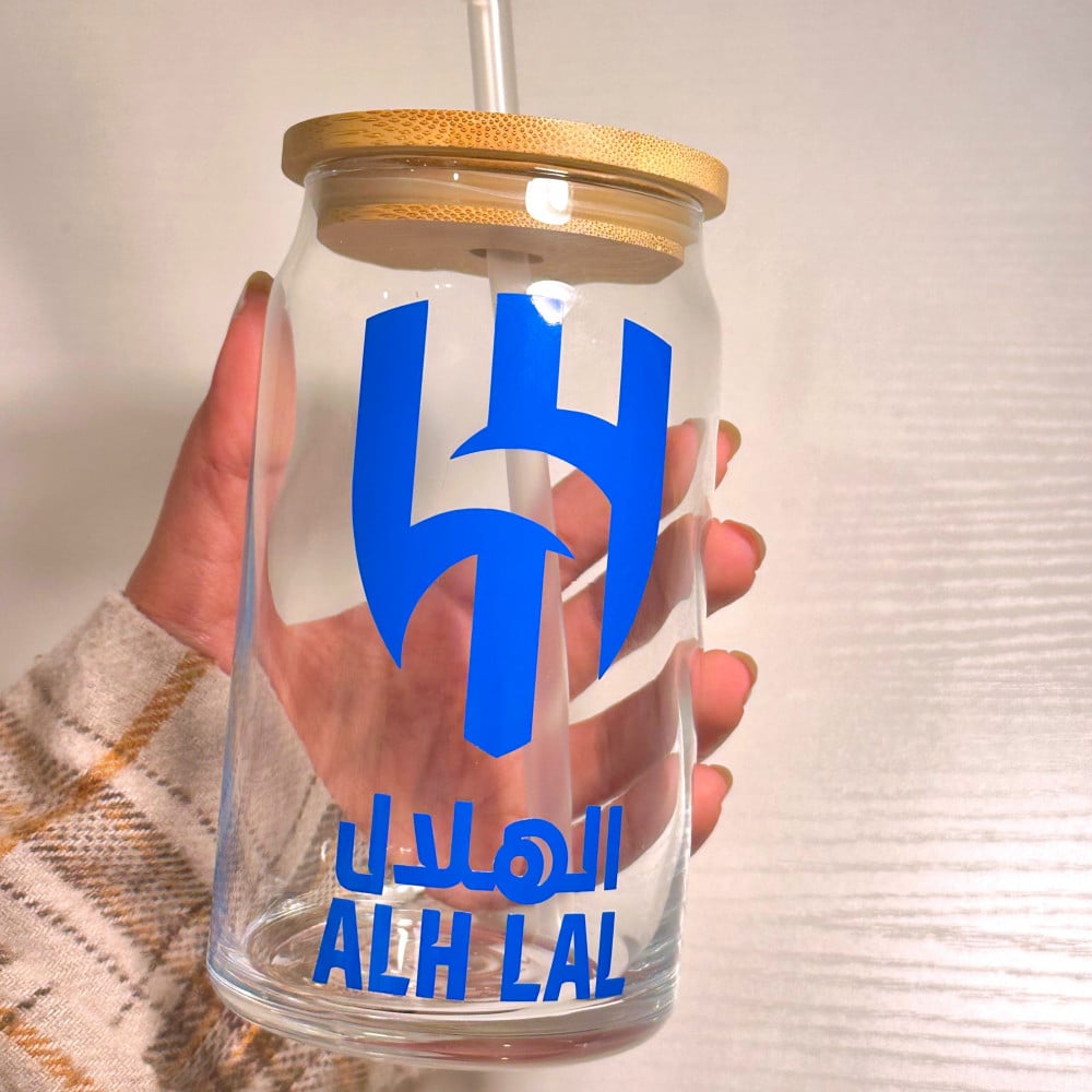 كوب بشعار الهلال زجاج شفاف مع مصاص زجاج
